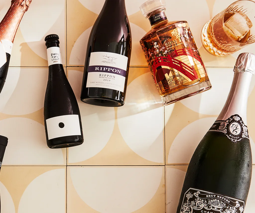 From left to right: 2022 Moo Brew Barrel Aged Stout, 2019 Rippon Mature Vine Pinot Noir, Hibiki Japanese Harmony 100th Anniversary Edition and NV André Clouet Silver Brut Nature.