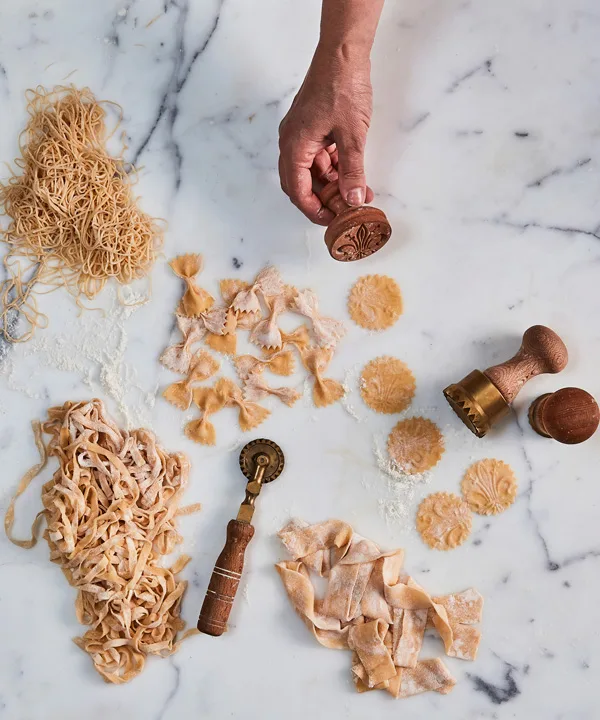 For farfalle, cut 1.5mm-thick pasta into 2.5cm-wide strips, then cut at 4cm intervals with a fluted wheel and pinch the centre of each rectangle so they resemble butterflies.