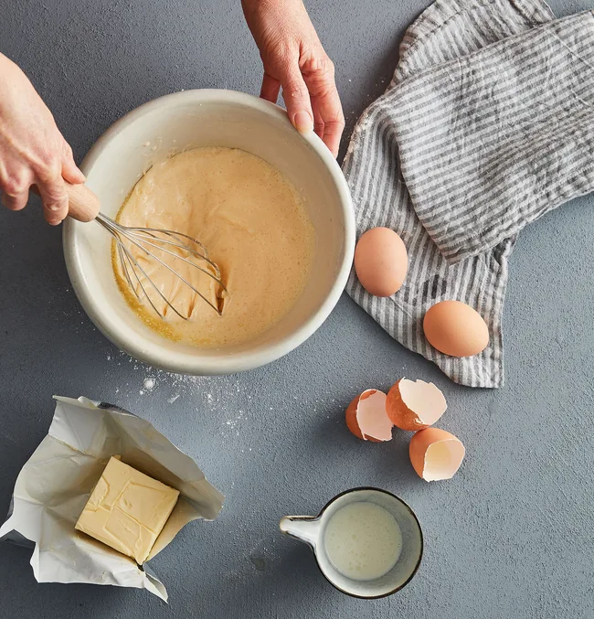• A French balloon whisk will help aerate the eggwhites quickly and with minimal effort for extra fluffy pancakes.