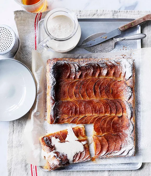 Apple-vanilla teacake with thick vanilla custard