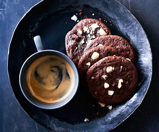 Chocolate-cornflake cookies with mocha ganache