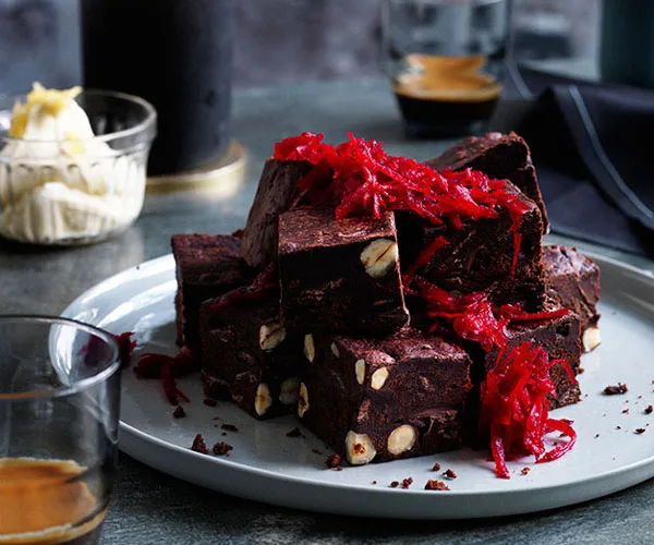 Colin Fassnidge’s beetroot brownies with ginger crème fraîche