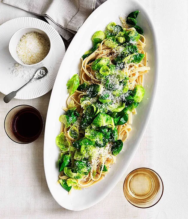 Fettuccine with Brussels sprouts, pecorino and garlic