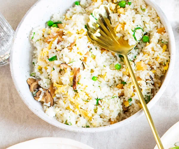 Louis Tikaram’s fried rice of shiitake, salted radish and peas