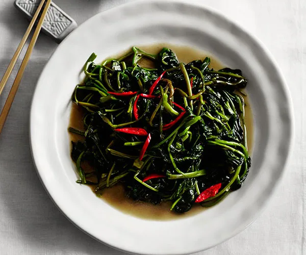 Flower Drum’s stir-fried water spinach with preserved bean curd (fu yu ong choy)