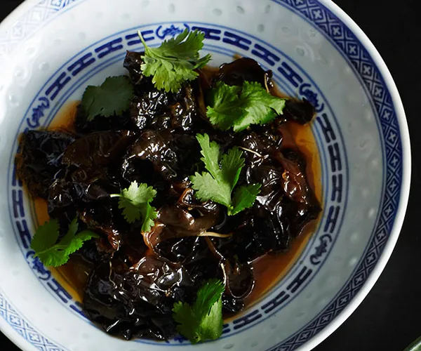 Victor Liong’s cold silken tofu with peanuts, salted daikon, coriander and black vinegar