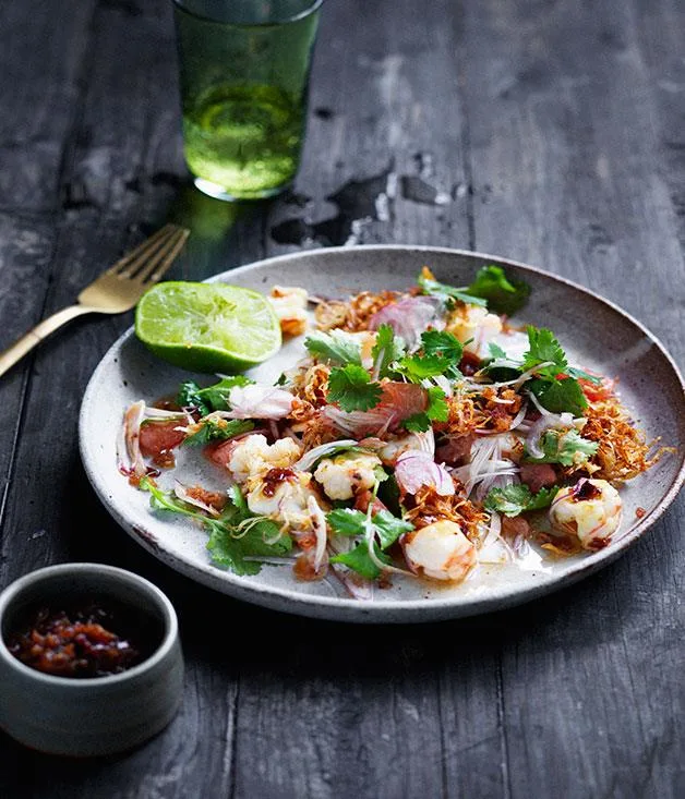 Prawn and pomelo salad with roasted chilli dressing