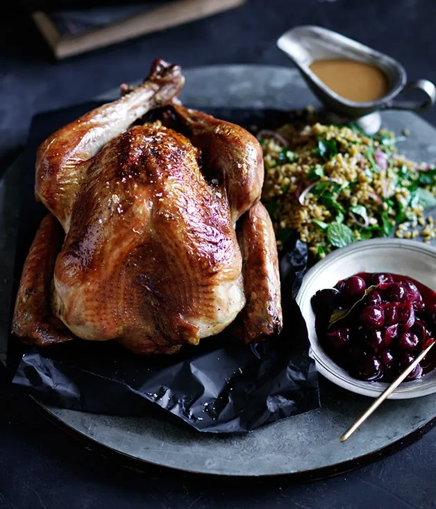 Roast turkey with sour-cherry stuffing and pickled cherries