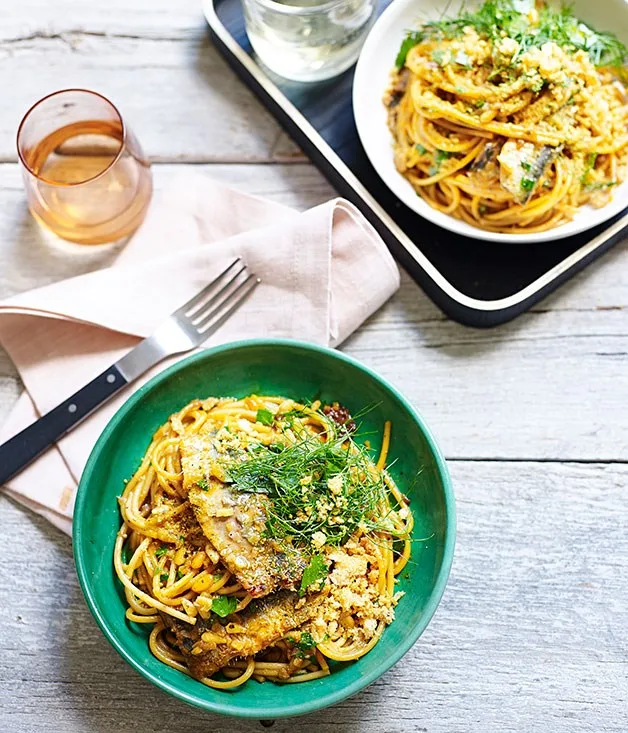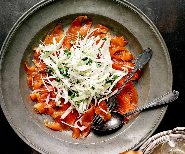 Tagliatelle with caramelised fennel, smoked trout and crème fraîche