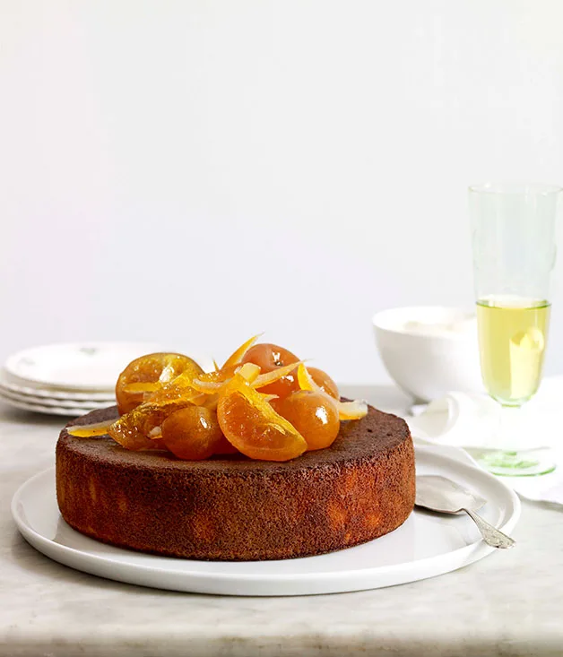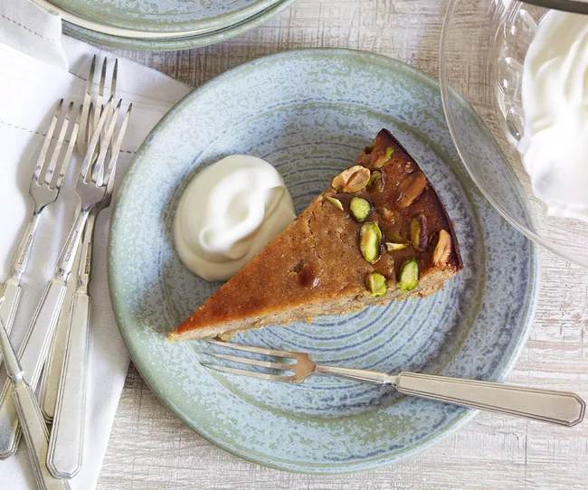 Orange, cardamom and almond gluten-free cake with orange-blossom yoghurt