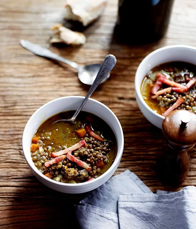 Smoked ham hock, caramelised onion and lentil soup