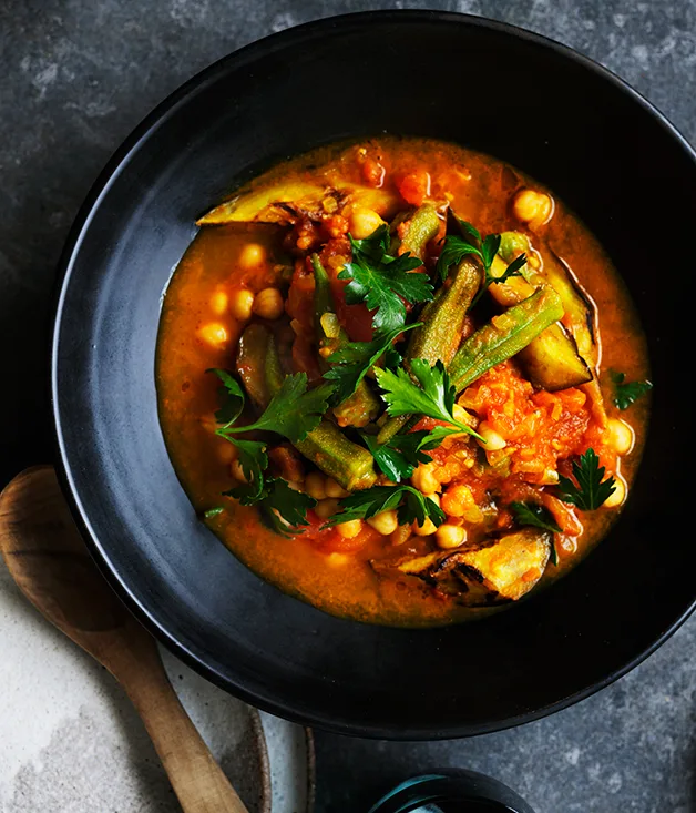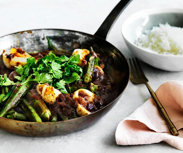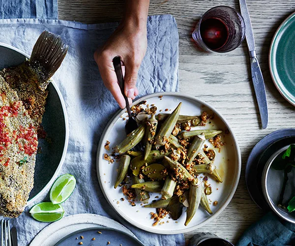 We have side dish recipes for okra, such as Japanese okra skewers with ponzu, as well as Middle Eastern recipes with okra such as bamya – a lamb and okra stew. Plus, Christine Manfield shares her recipe for okra and pomegranate salad.