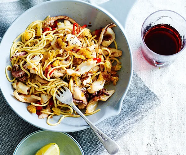 Spaghettini with calamari, rosemary and lemon