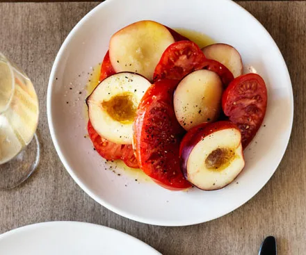 Saint Peter’s oxheart tomato and white peach salad