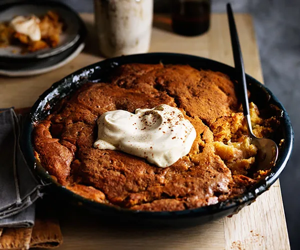 Apple and candied ginger self-saucing pudding