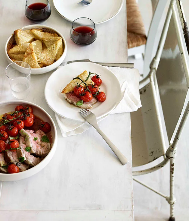 Slow-cooked lamb in Soave with roast cherry tomatoes and semolina gnocchi