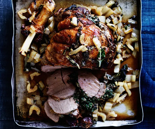 Lamb stuffed with silverbeet and anchovies