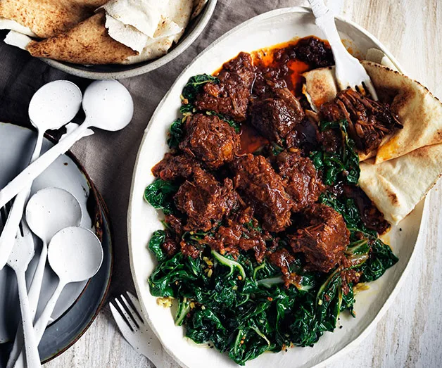 Berbere beef stew and spiced silverbeet