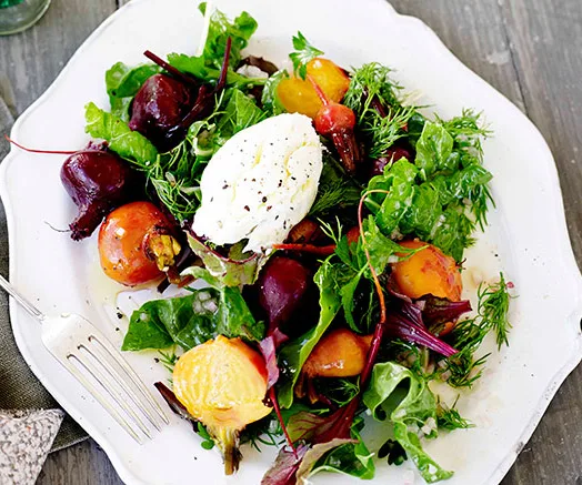 Beetroot, silverbeet and goat’s curd salad