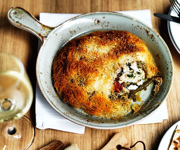 (Credits: Ben Dearnley)Greg Malouf’s baharat lamb shoulder with onions and moghrabieh