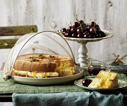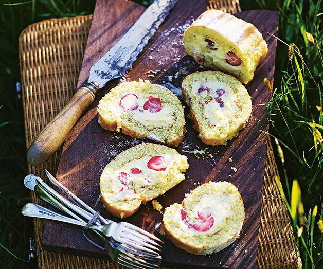 A classic Victorian sponge cake spread with cream and piled high with strawberries is a thing of beauty. But we won’t say no to a pistachio and rose roulade, a rich chocolate lamington cake and a few madeleines either. Sponge cakes, in any form, make a welcome addition to afternoon teas and dessert times.