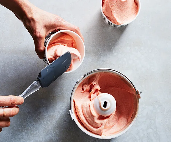 Curtis Stone’s no-churn strawberry and créme fraîche ice-cream with caramelised macadamia nuts