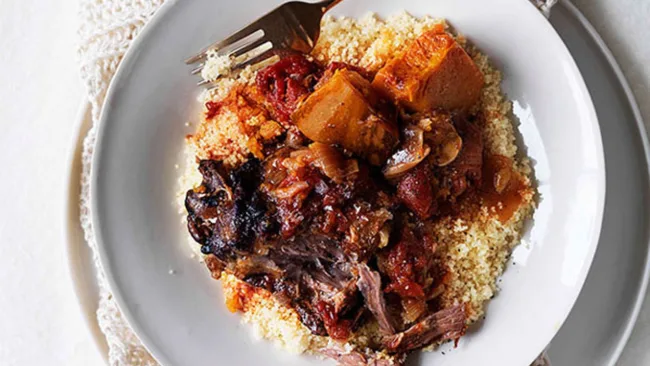 This Moroccan-inspired dish is simple to throw together. Braised pumpkin, slow-cooked lamb neck and a fluffy bed of couscous make it an ideal winter warmer on cool nights.
