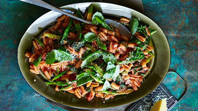 Gnochetti Sardi is a ridged hand-formed pasta hailing from Sardinia. Here, toss the pasta in a delicious tomato sugo and serve with broccolini and finely grated pecorino. With a short ingredient list and fast cooking time (it can be made within 30 minutes), this recipe is primed for speedy dinners.