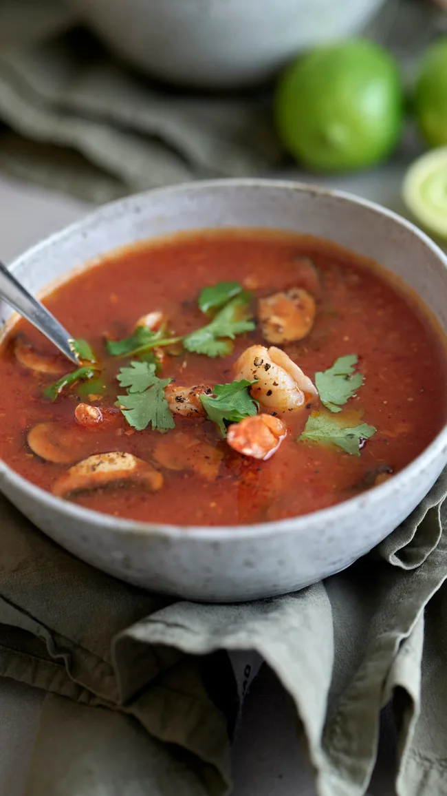 When the winter chill kicks in, you can never go wrong with a hot soup. This tom yum soup combines spicy, sour and savoury flavours for a tasty meal that’ll have you going back for seconds. Add prawns for sustenance and added flavour.
