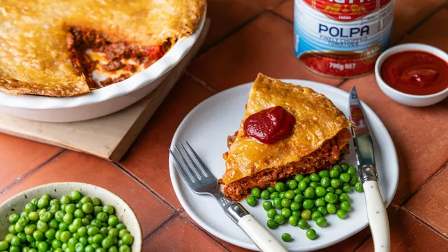 Elevate the traditional Australian beef pie with this homemade recipe. A burst of fresh Mutti Polpa flavour in the filling — and a side of verdant peas — gives an unexpected twist to this beloved classic.