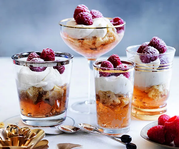 Moscato, raspberry and panettone trifles