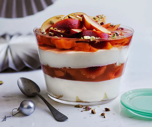 Lauren Eldridge’s apricot, honey, coffee and macadamia trifle