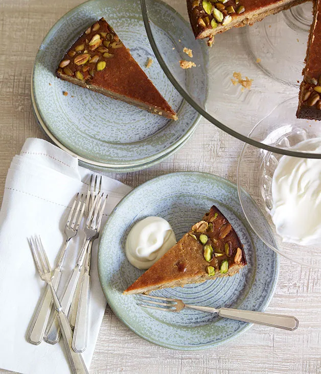 Shiraz gin and pear brioche cake with gin ice-cream