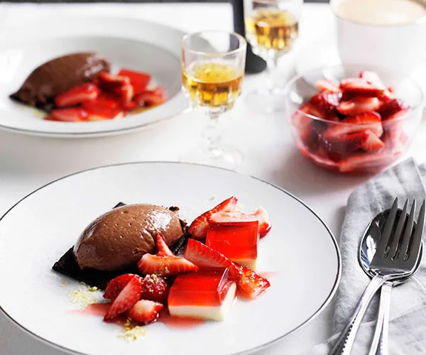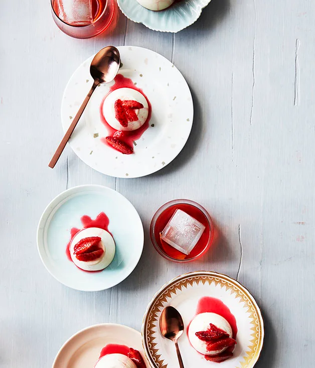 Curtis Stone’s yoghurt panna cotta with strawberries and rosewater