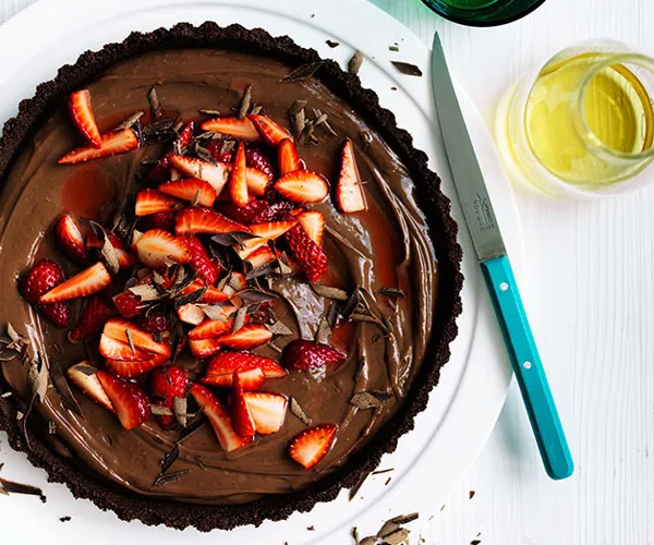 Curtis Stone’s dark chocolate and strawberry tart