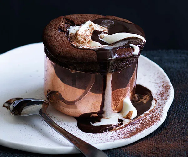 Soft-centred chocolate budini with milk ice-cream