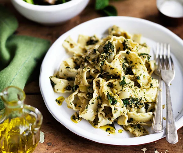 From nutty rustic pesto, soups brimming with beans and veg, and sunny ways with tomatoes, these vegan pasta recipes pack a punch.