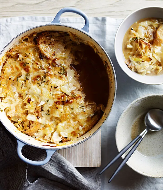 Bread and cabbage soup with Fontina and thyme