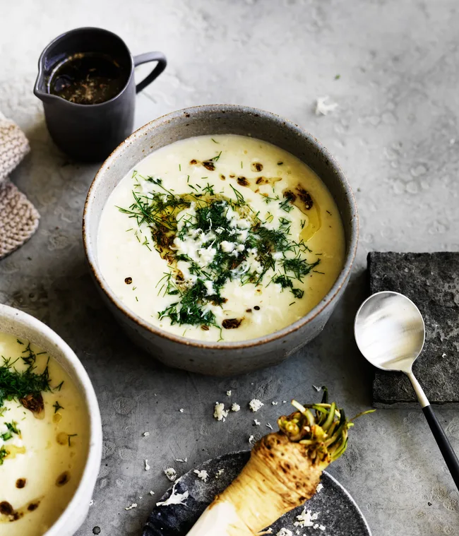 Parsnip soup with hazelnut and thyme butter