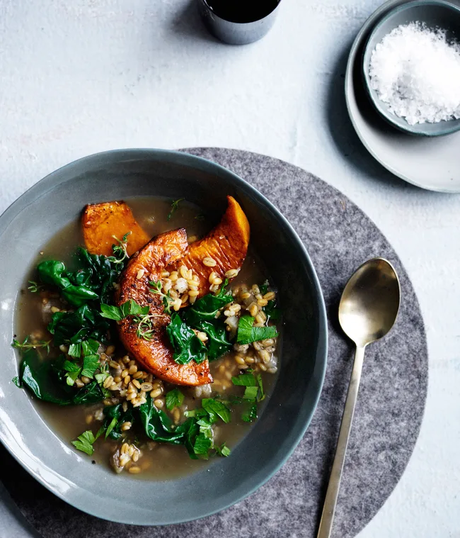 Green lentil soup with pumpkin and harissa