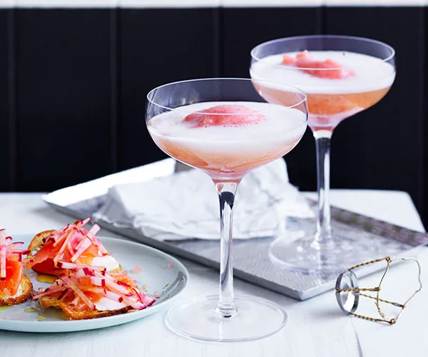 The sorbet can be made ahead and ready to go when it’s time to start the festivities. It’s quite forgiving when it comes to the choice of wine; it could be prosecco, say, a light Lambrusco or Franciacorta for something a little special. This Sgroppino could also be served in place of dessert, perhaps using moscato d’Asti as the sparkling. For extra punch, add a touch of vodka or peach liqueur.
