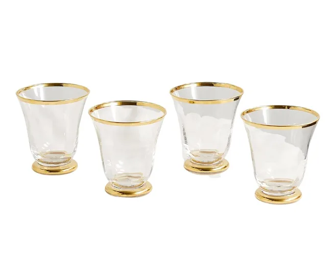 These Aerin tumblers bring the glitz and glamour to hydration. Made in Italy from faceted crystal, the Sophia set is fluted with gold-painted rims and inspired by vintage design.