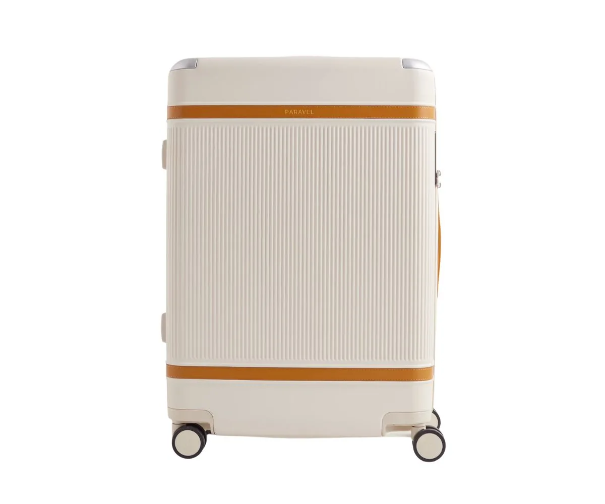 Made from Paravel’s signature recycled polycarbonate and trimmed with vegan leather, this rolling suitcase is a dapper jet-setting accessory.