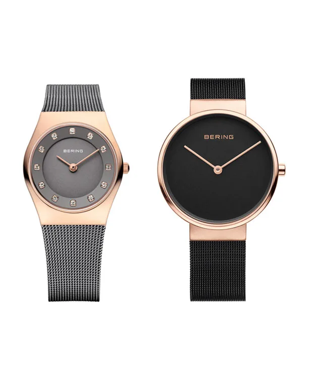 This Milanese watch with its slim Danish design and rose gold case is a striking unisex timepiece. The ebony dial and woven steel mesh band will appeal to those with an elegant sense of style. The scratch-resistant timepiece befits an active lifestyle, too.