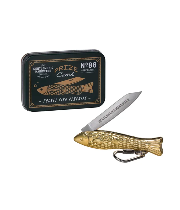 With this gold-effect penknife you’ll never find yourself stuck in a fishy situation again. The knife features a unique fish-shaped handle along with a carabiner clip, and even comes packaged in its own tiny sardine tin.