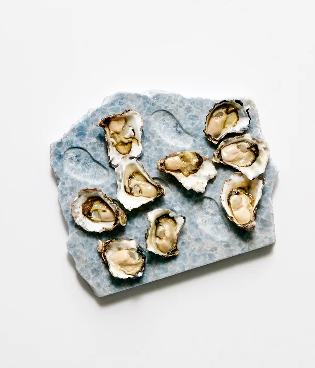 Add a touch of elegance to any Christmas spread with The Seasonal Circle’s blue crystal marble oyster tray. Chilling the marble in the freezer for a few minutes before serving ensures the oysters stay cool and fresh.