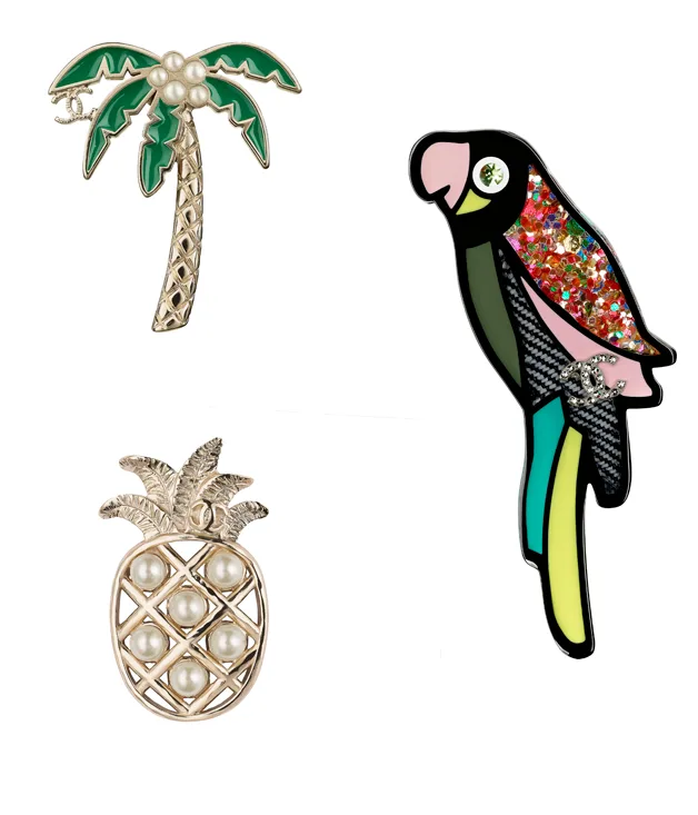Chanel’s dazzling Cuba Brooches from its 2016/17 Cruise collection are as colourful and fun as the country they’re named for. Crafted from materials such as resin, diamantes, metal and fantasy pearls, the brooches make for a bold yet timeless statement piece.