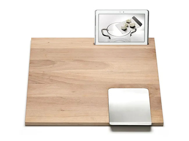 Knindustrie Workstation W1: Meet the modern-day chopping board or kitchen food-prep shelf; Knindustrie’s workstation comes equipped with a red-lacquered tablet slot, meaning fewer interruptions to your cooking to check the recipe. Designed by Massimo Castagna and crafted from Canaletto Walnut, it includes a practical knife for chopping ingredients.