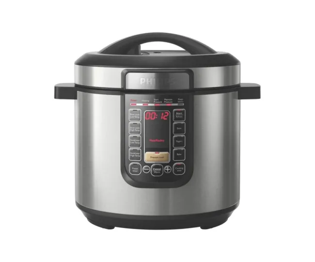 - Five cooking functions: Sauté/sear, slow cook, pressure cook, pressure steam and keep warm