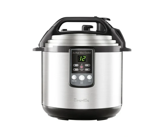 A pressure cooker-slow cooker hybrid, this electric Breville model is fully programmable with set-and-forget safety features and a six-litre capacity. The different cooking functions also mean you can save on dishes by pre-cooking onion, garlic and other ingredients before setting the meal to pressure cook or slow cook. Perfect for wintry nights or when you have unexpected dinner guests.
